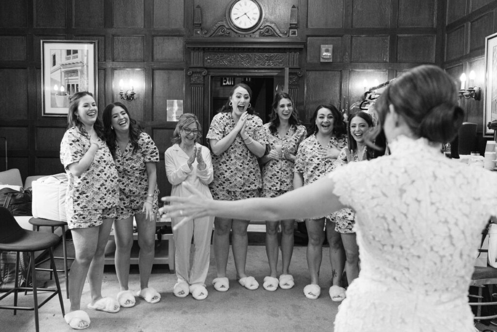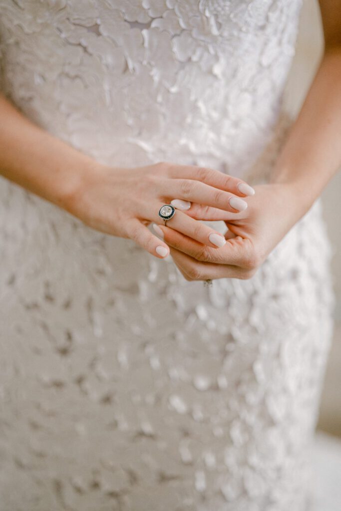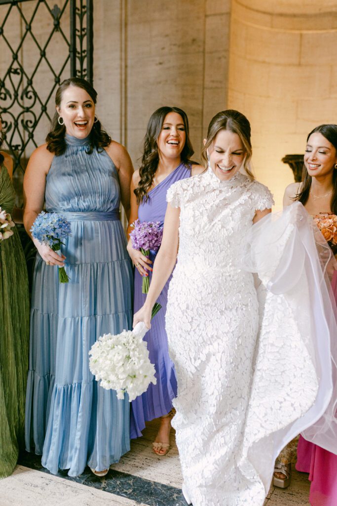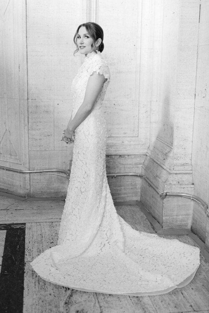 Amanda chose to get ready onsite at Cipriani Broadway 25, allowing for a seamless and relaxed morning surrounded by the venue’s grand architecture. The soaring ceilings, dramatic columns, and beautiful natural light created a refined, editorial atmosphere for bridal portraits.