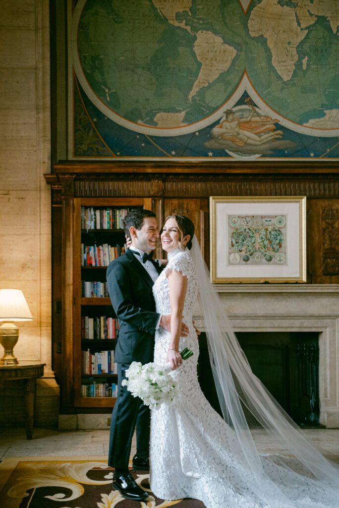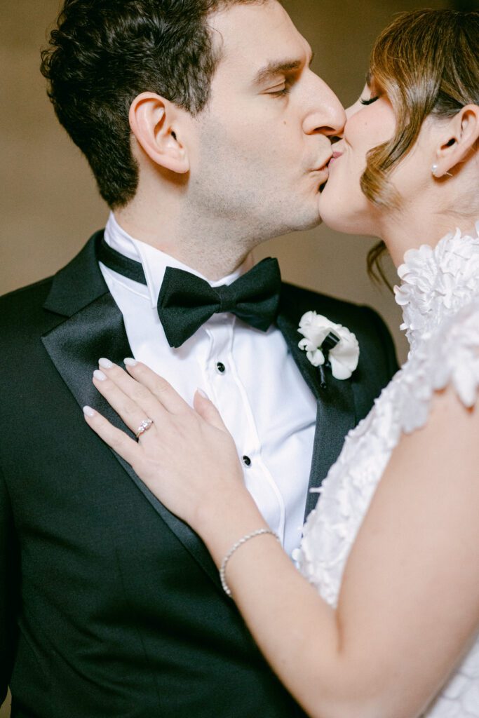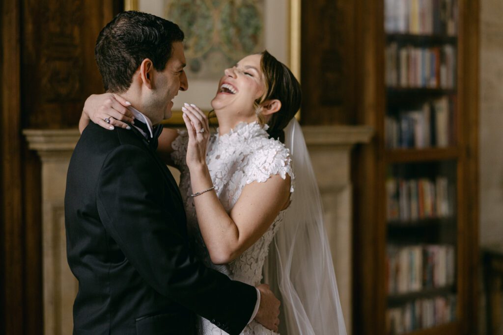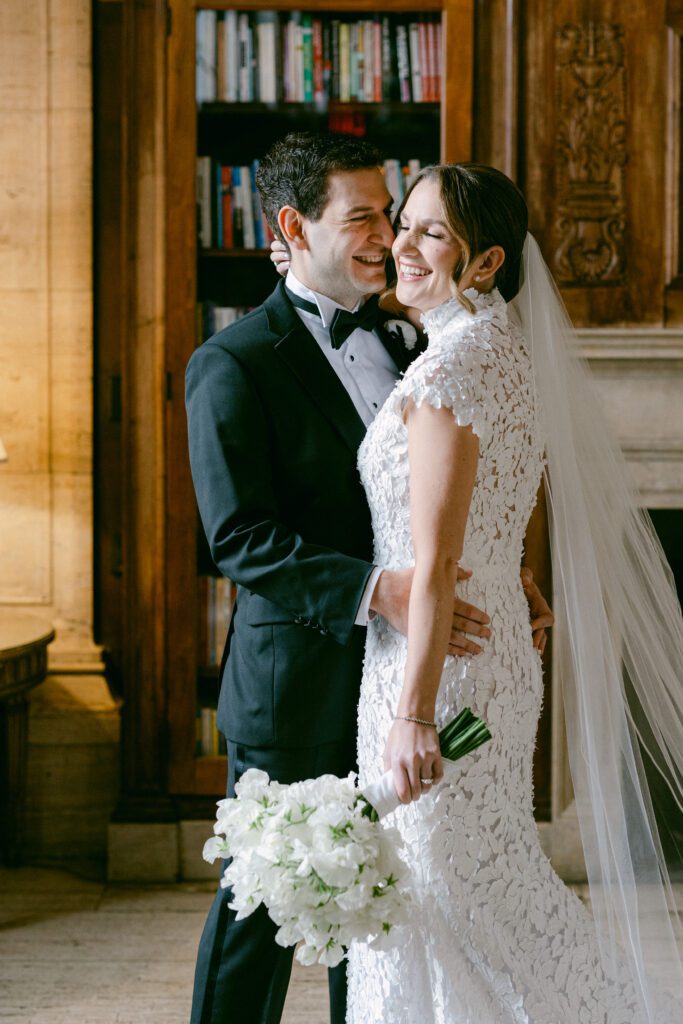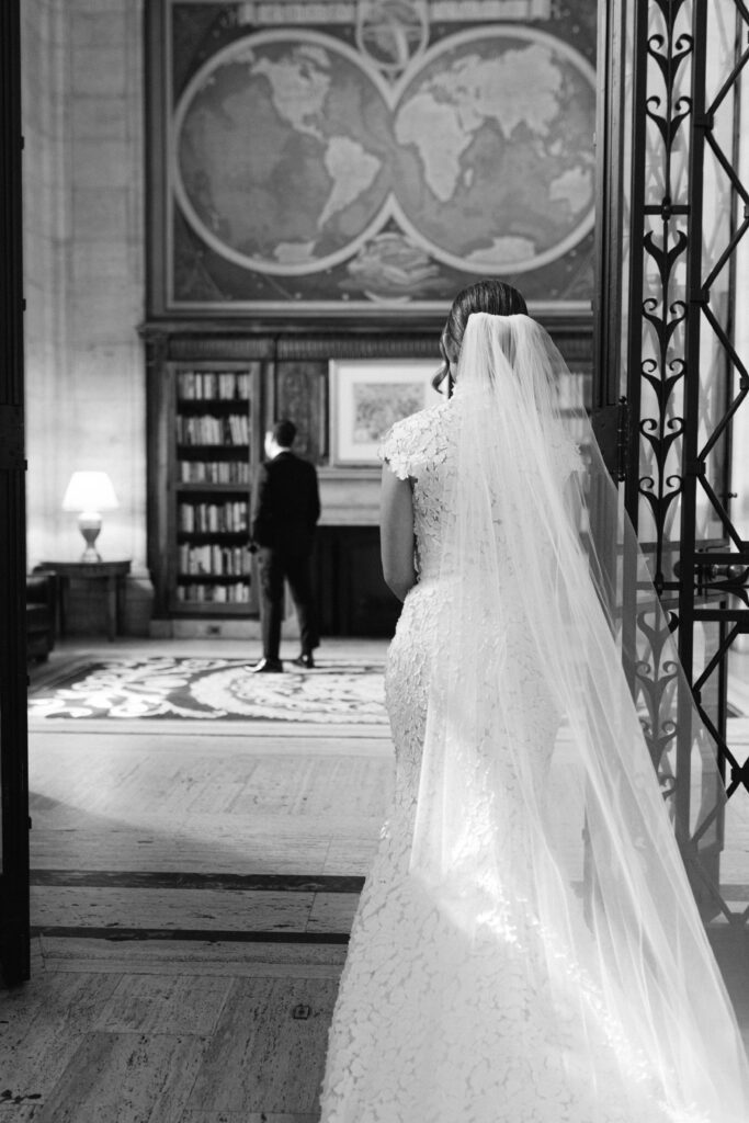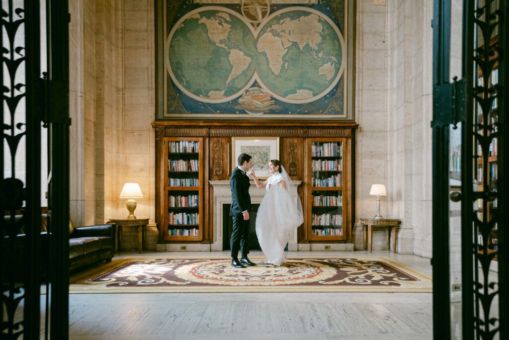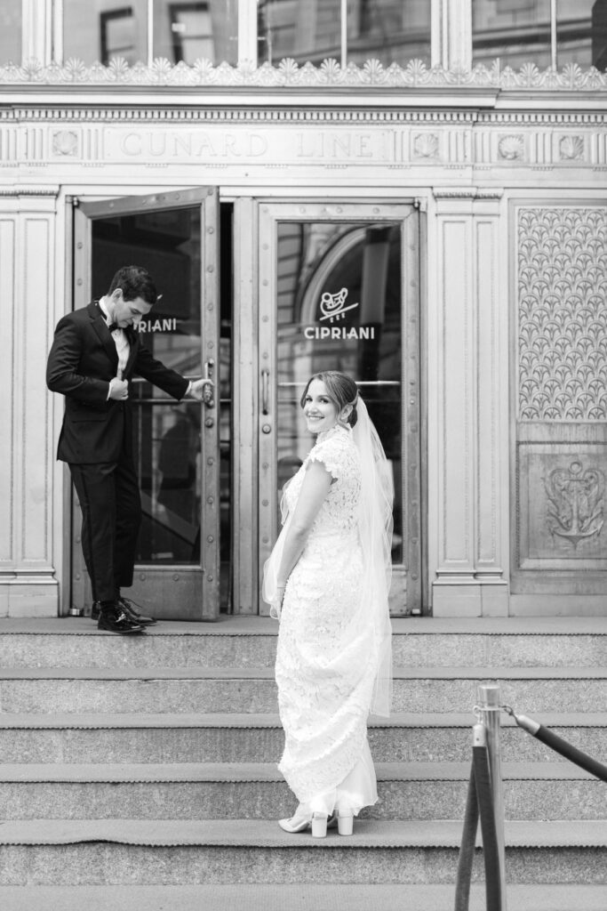 One of the greatest advantages of hosting your wedding at Cipriani Broadway 25 is the versatility of the space. Amanda and Andrew chose to do their first look inside the building, surrounded by the iconic architecture that makes this venue so sought-after.