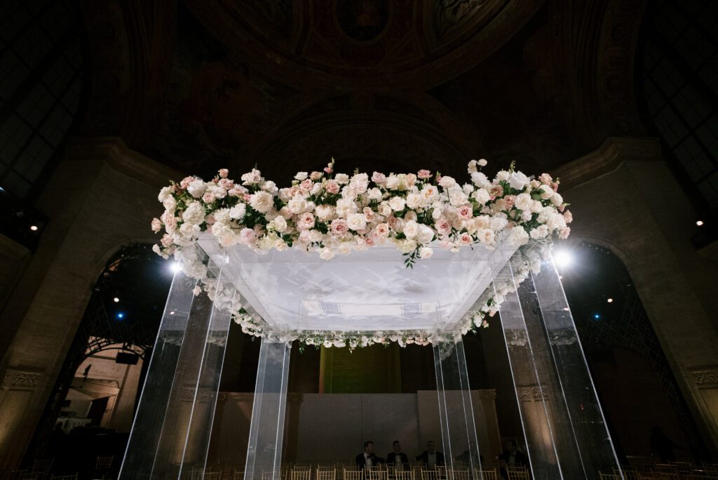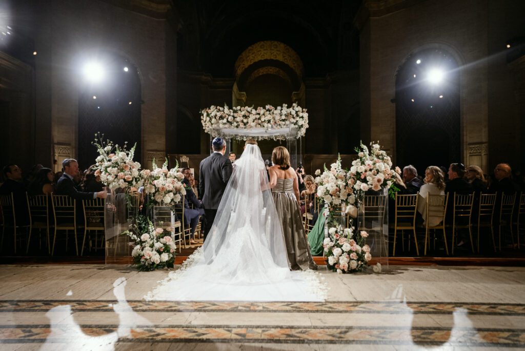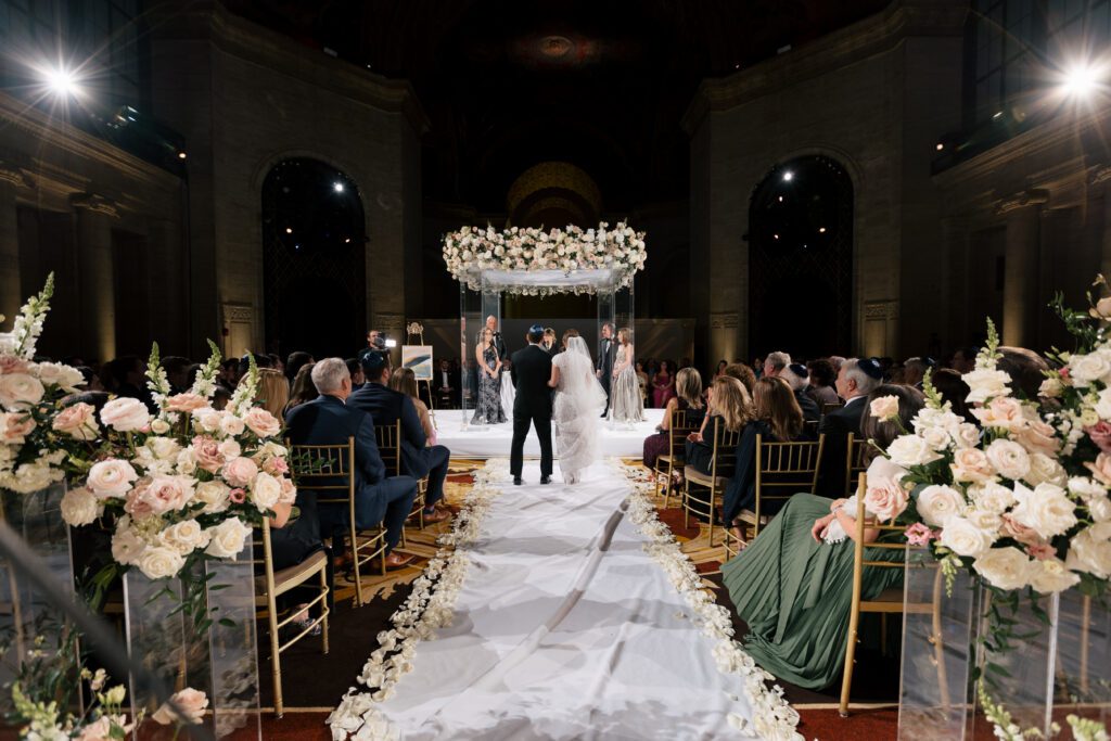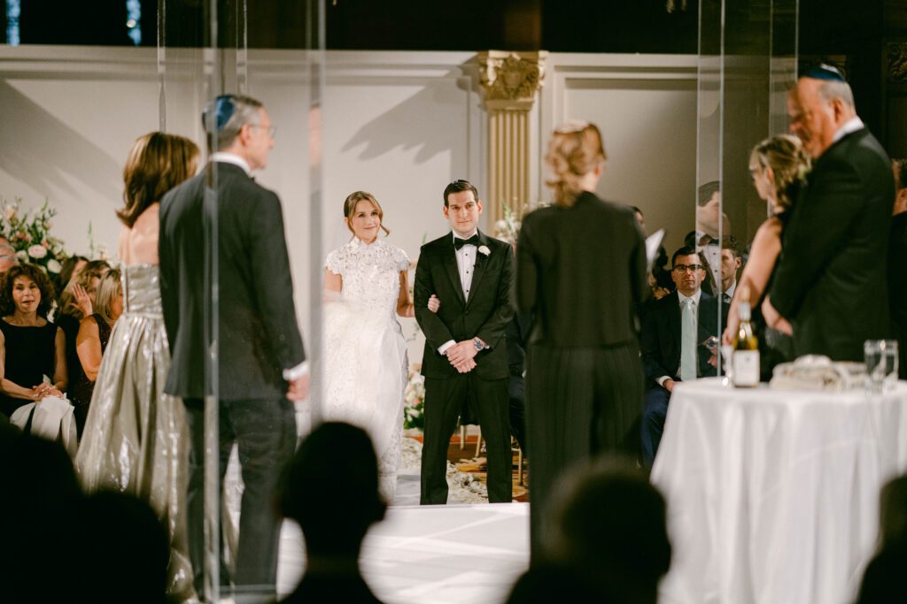 The couple’s Jewish ceremony was beautifully designed in a circular seating arrangement — a thoughtful layout that allowed guests to feel fully present and intimately connected to the moment.