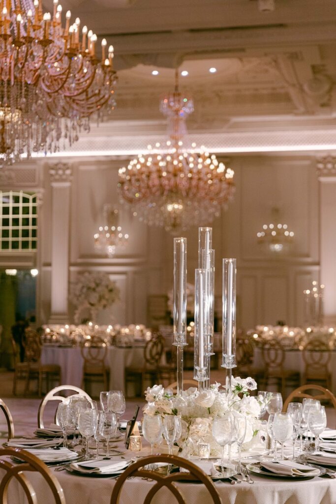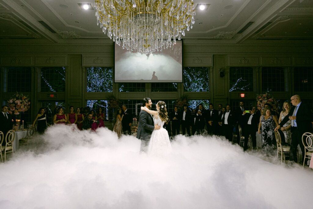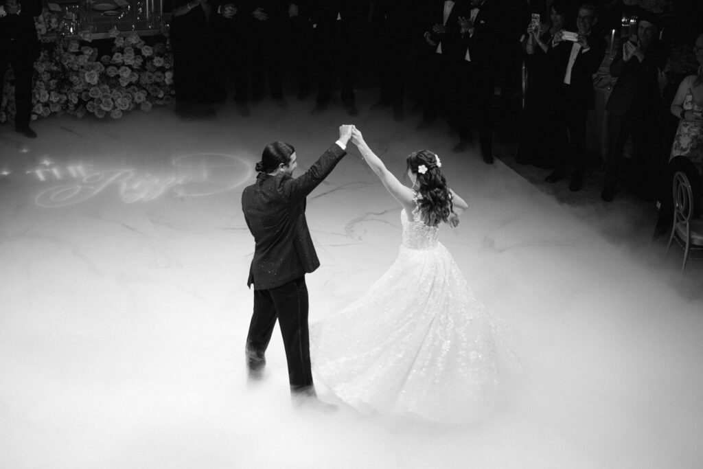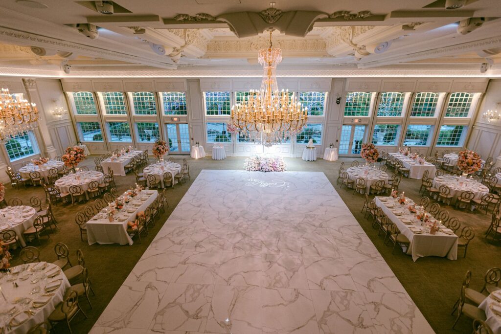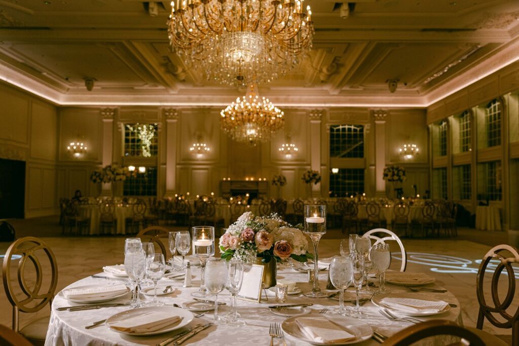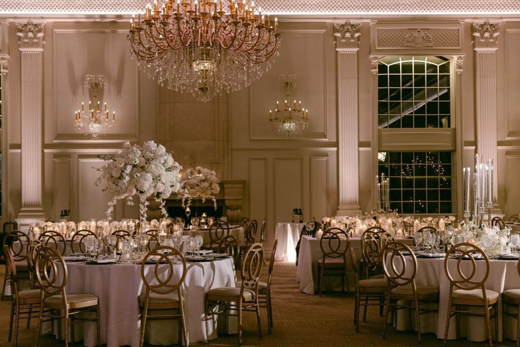 The reception experience at The Estate at Florentine Gardens wedding is nothing short of spectacular. The ballroom is designed to impress, featuring: