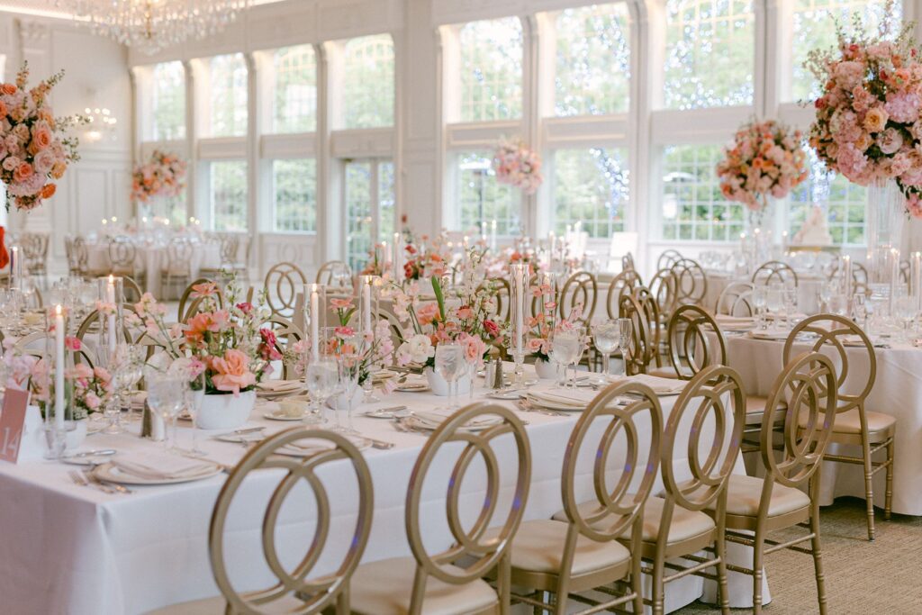 Couples can exchange vows outdoors surrounded by greenery or opt for an indoor ceremony that feels just as elegant. The indoor space features large windows, high ceilings, and refined décor, ensuring your ceremony is beautiful no matter the season.