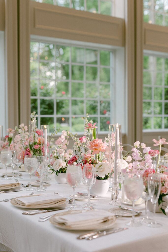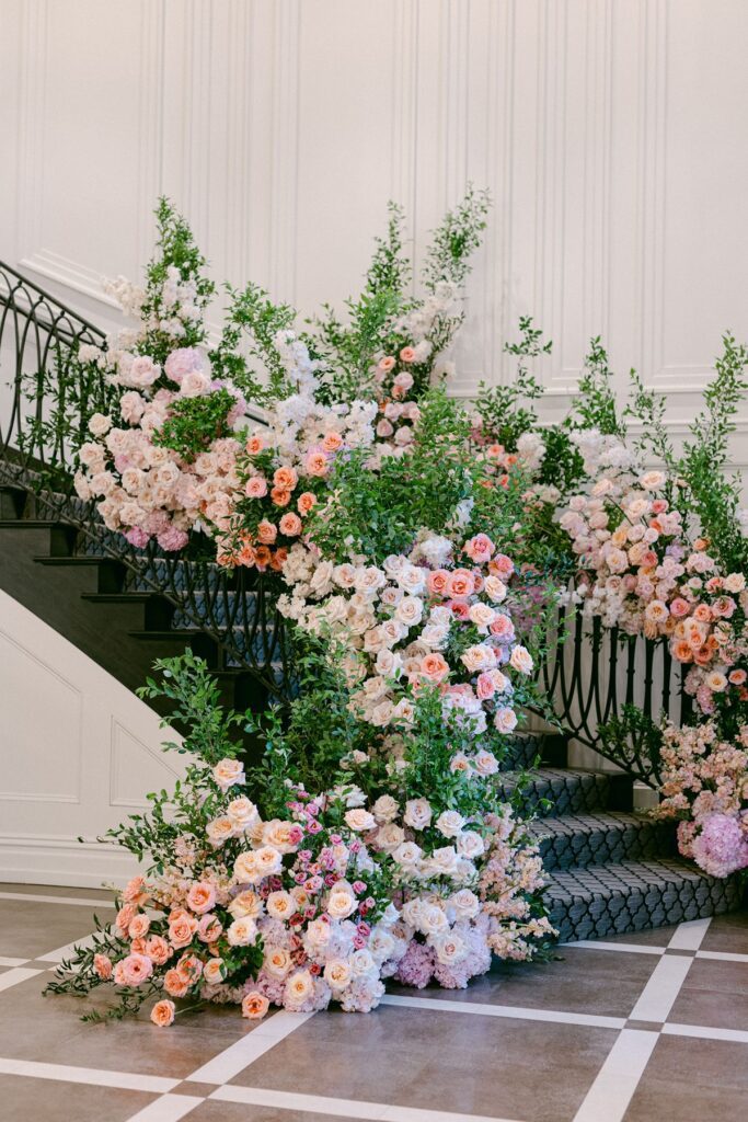 • Plan for seasonal details like florals that complement the gardens